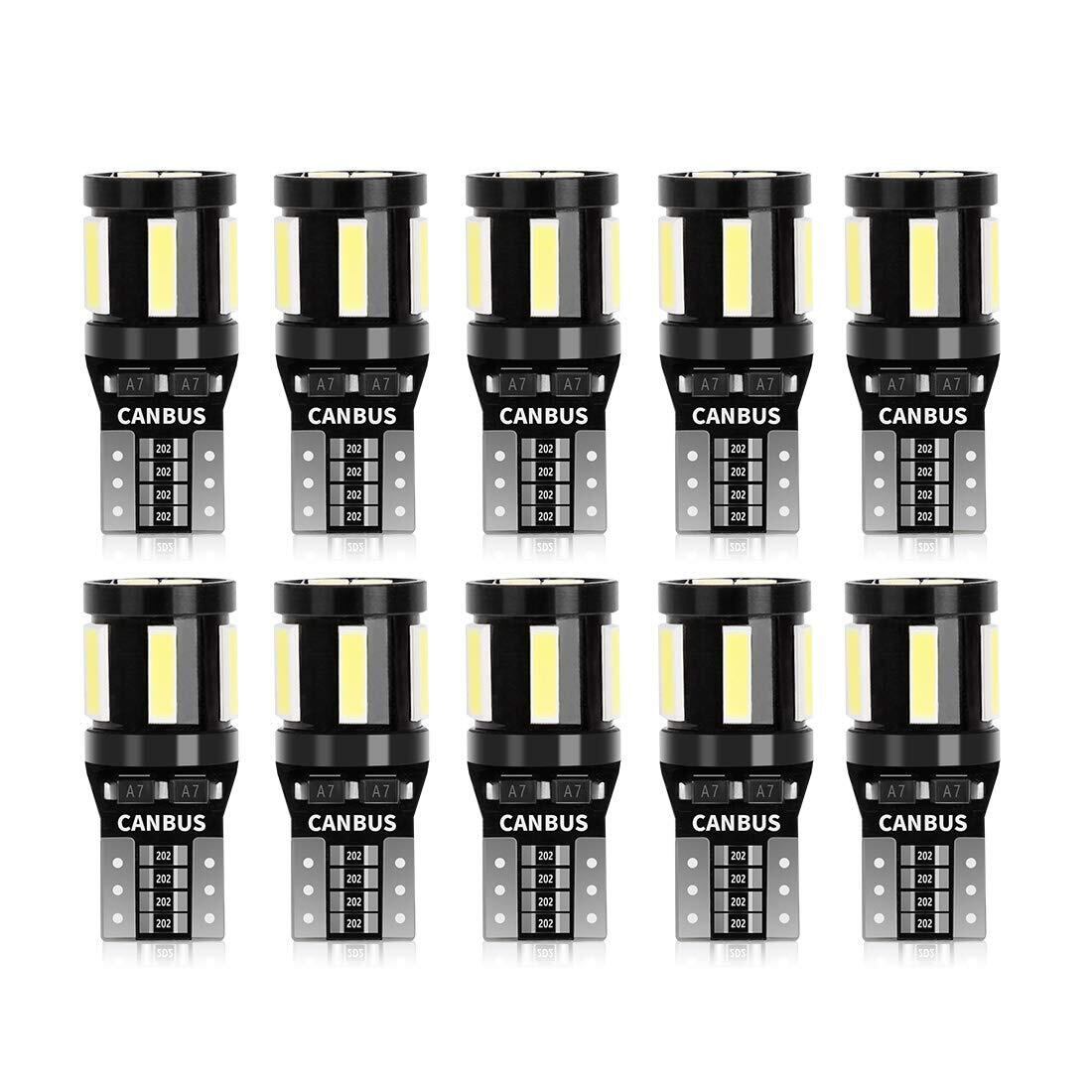 SUPAREE T10 LED 爆光 ホワイト ポジションランプ 10個 キャンセラー内蔵 10連SMDLED素子 30000時間寿命 12V ルームランプ/スモールランプ/クリアランスランプ