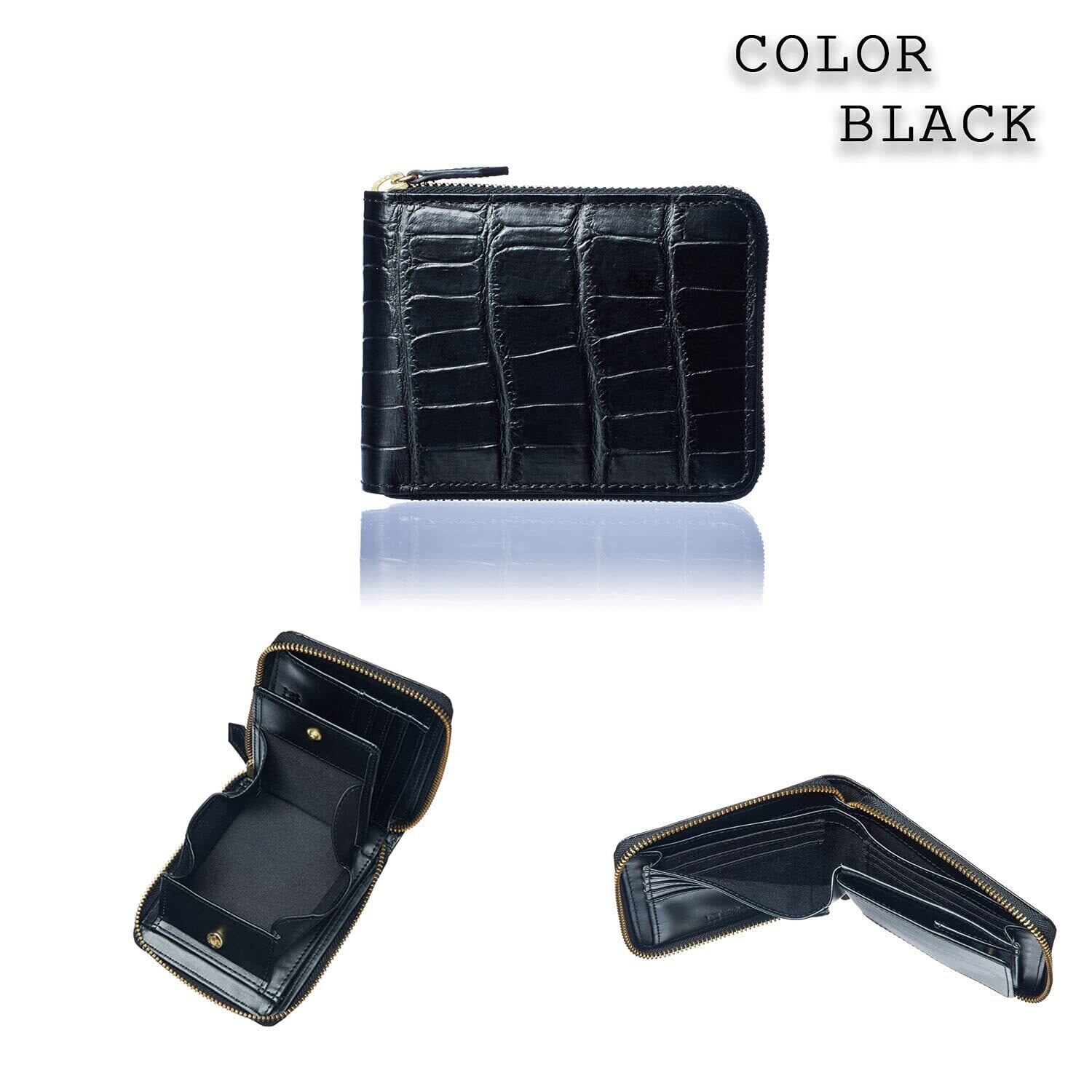 【2022最新】[CHRISTIAN BELETT] イタリア ORION社製 牛革 メンズ 二つ折り 財布 クロコ 型押し 分厚くなりにくい ラウンドタイプ (Black) | Premium Stage