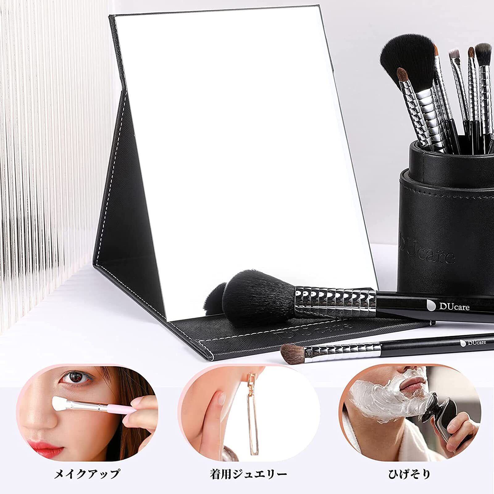 DUcare ドゥケア 鏡 化粧鏡 卓上 ミラー 折立鏡 スタンド 折りたたみ式 縁なし 大きな鏡 角度自由調整 コンパクトに収納可能 鮮明に映す ブラック