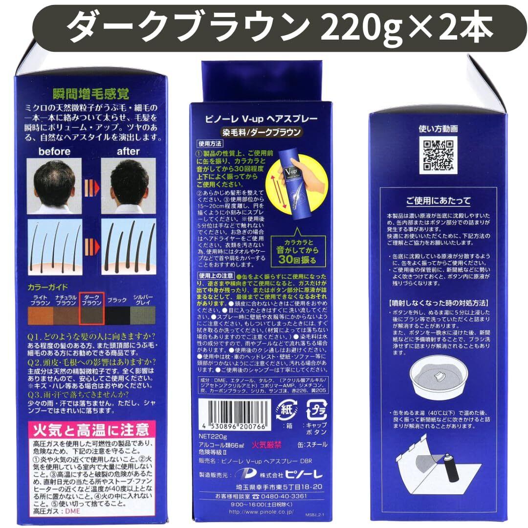 増量品220gx2本】ピノーレ ボリュームアップ V-up ヘアスプレー ダークブラウン 増量220g×2本 (薄毛隠しスプレー)