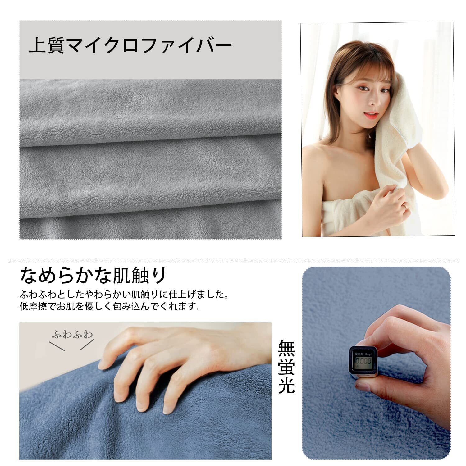 【肌に優しい】極細繊維のマイクロファイバー素材で、ふっくらやわらかくて軽いタオル。ソフトでふんわりとした質感、なめらかな肌触りで心地よいです。お肌を優しく包み込んでくれます。蛍光染料一切使用しておりません、肌の弱い方や赤ちゃんに使用も安心です。