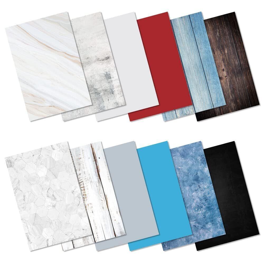 【12枚入両面写真背景紙】A3サイズ撮影背景シート12柄6枚入・両面違う図柄 サイズ:約284x410mm 木目調、大理石調、コンクリート柄、セメント柄、復古調、壁柄など様々な柄も備えています、1枚の背景紙に様々な雰囲気を実現できます。