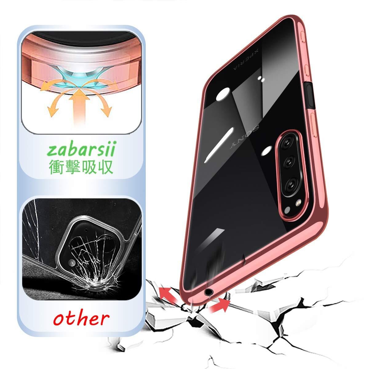 Xperia 5 ケース クリア Xperia5 SO-01M SOV41 カバー TPU 透明 シリコン 耐衝撃 スリム 薄型 ストラップホール 軽量 メッキ加工 Xperia 5 カバー (ローズゴールド)