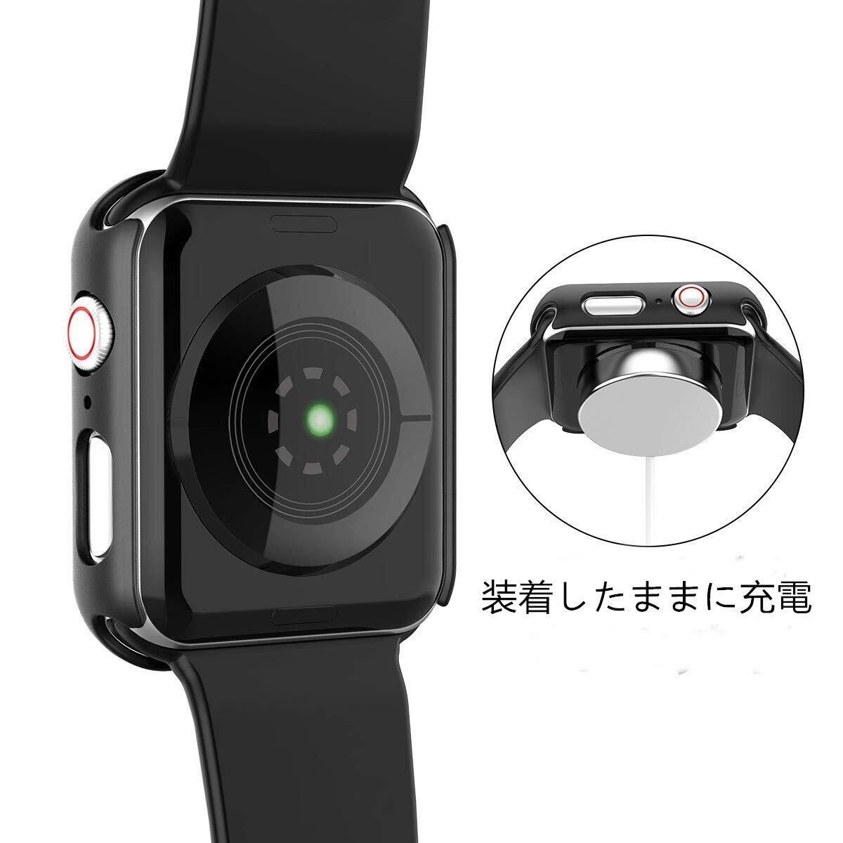 ULOE 対応 Apple Watch Series 6 / SE / SE2 / Series 5 / Series 4 40mm用 ケース, 対応アップルウォッチ 6/SE/SE2/5/4 40mm 保護カバー ガラスフィルム 一体型 PC素材全面保護(ブラック)