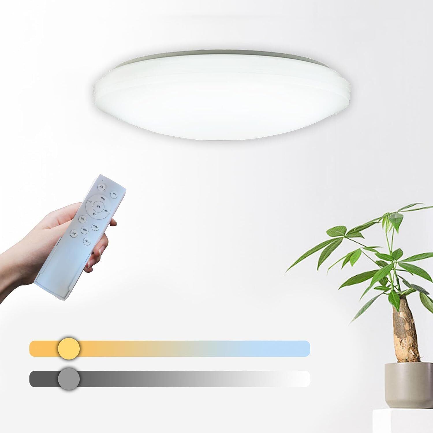 【無段階調光・調色】専用リモコンで「明るい」「暗い」ボタンを長押して色温度が10%から100%まで連続明るさを調整でき、「寒色」「暖色」ボタンを長押して色温度が2700Kから7000Kまで(昼光色−昼白色−電球色)連続光の色を調整できます。壁のスイッチを素早くオンとオフにすることで、3つの光の色を切り替えることができます。2つの操作方法が並立しており、ニーズに応じて異なる場所で使用することができ、コスパが良いです。