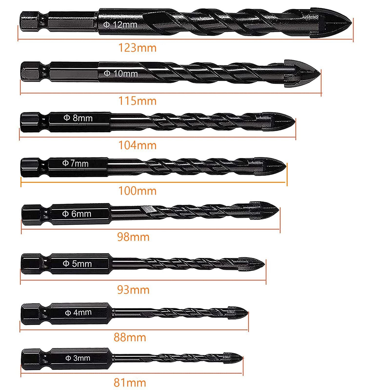 GOOMAND 【8個入り】 ガラスドリルビット タイル 穴あけ 超硬刃 コンクリート ドリルビット 六角軸 陶器・ガラス・タイル 鋳物の穴あけ用 【3mm 4mm 5mm 6mm 7mm 8mm 10mm 12mm】【8個入り】