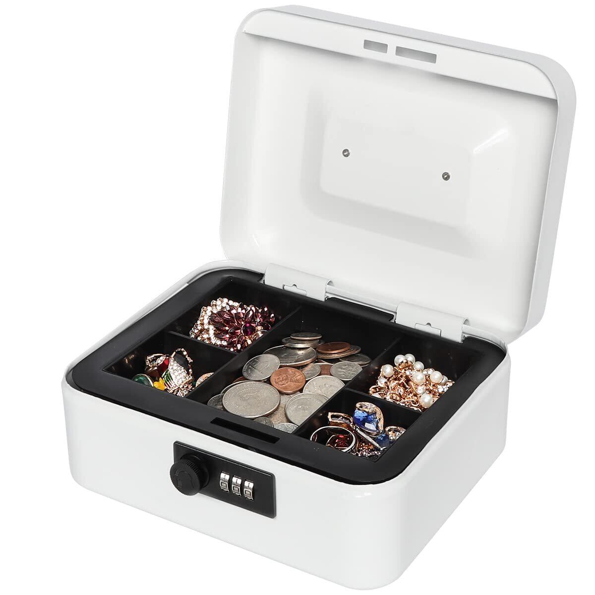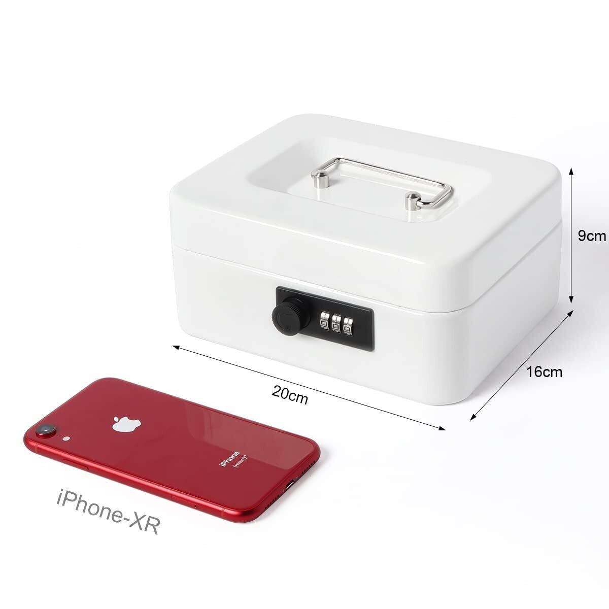 Lysmics 金庫 手提げ金庫 ダイヤル式 貯金箱 ミニ金庫 収納ボックス 家庭用 防犯 事務用品 (ホワイト, S)