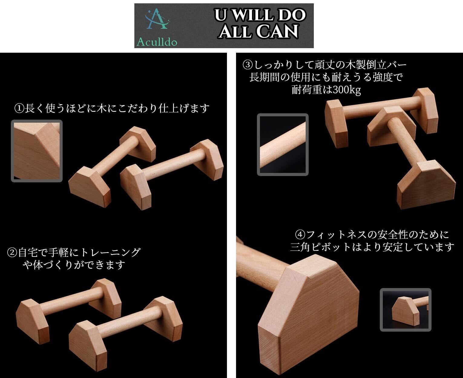 Aculldo プッシュアップバー 倒立バー 木製 腕立て伏せ 体操 筋力トレーニング フィットネス トレーニング 逆立ち 腕立てスタンド 逆スタンド 木製平行棒 頑丈 安定性 滑り止め Lシット 腕立て 倒立 自重トレーニング スポーツ