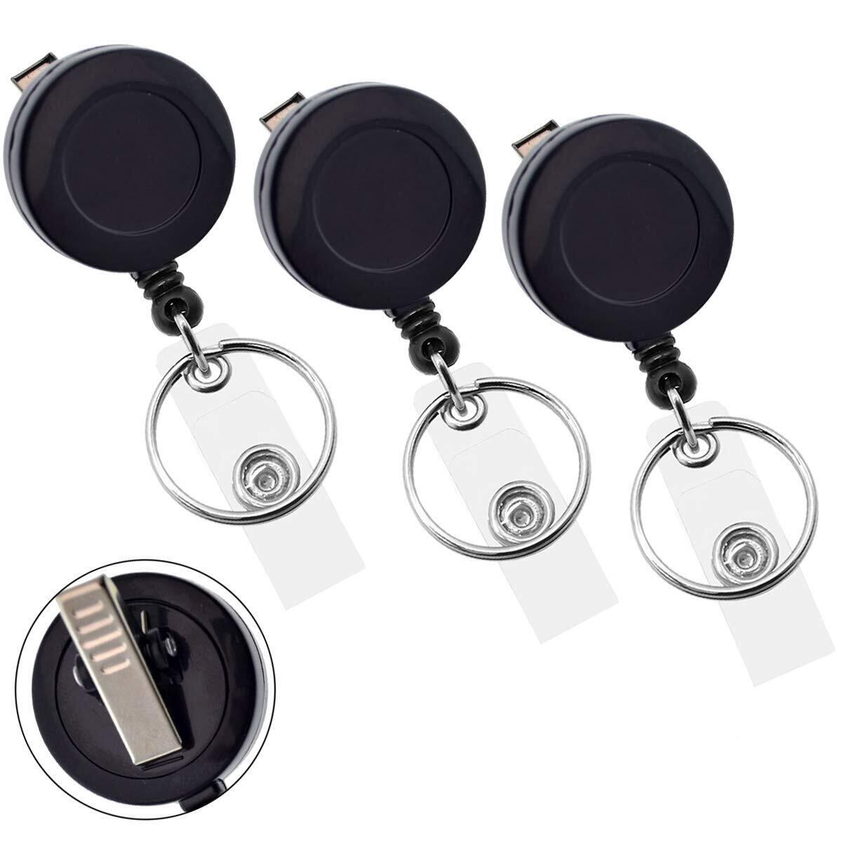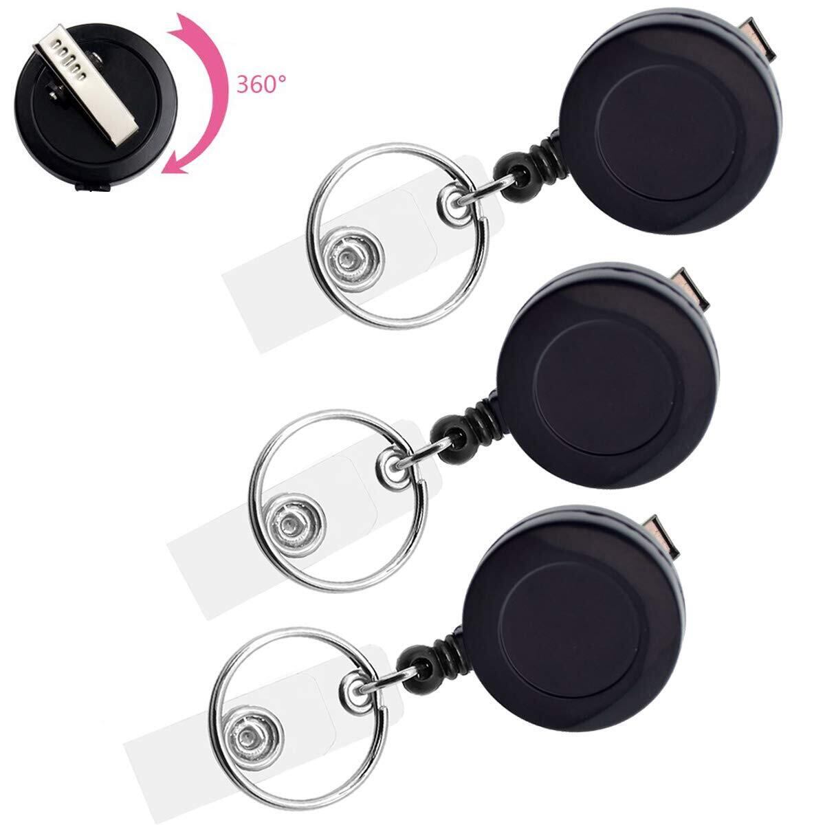 YOUOWO リール 名札 リールストラップ IDカードホルダー カードストラップ 吊り下げ名札用リール 伸縮キーホルダー 回転クリップ 伸びるストラップ 最長63cm 黒 3個セット ブラックリールストラップ