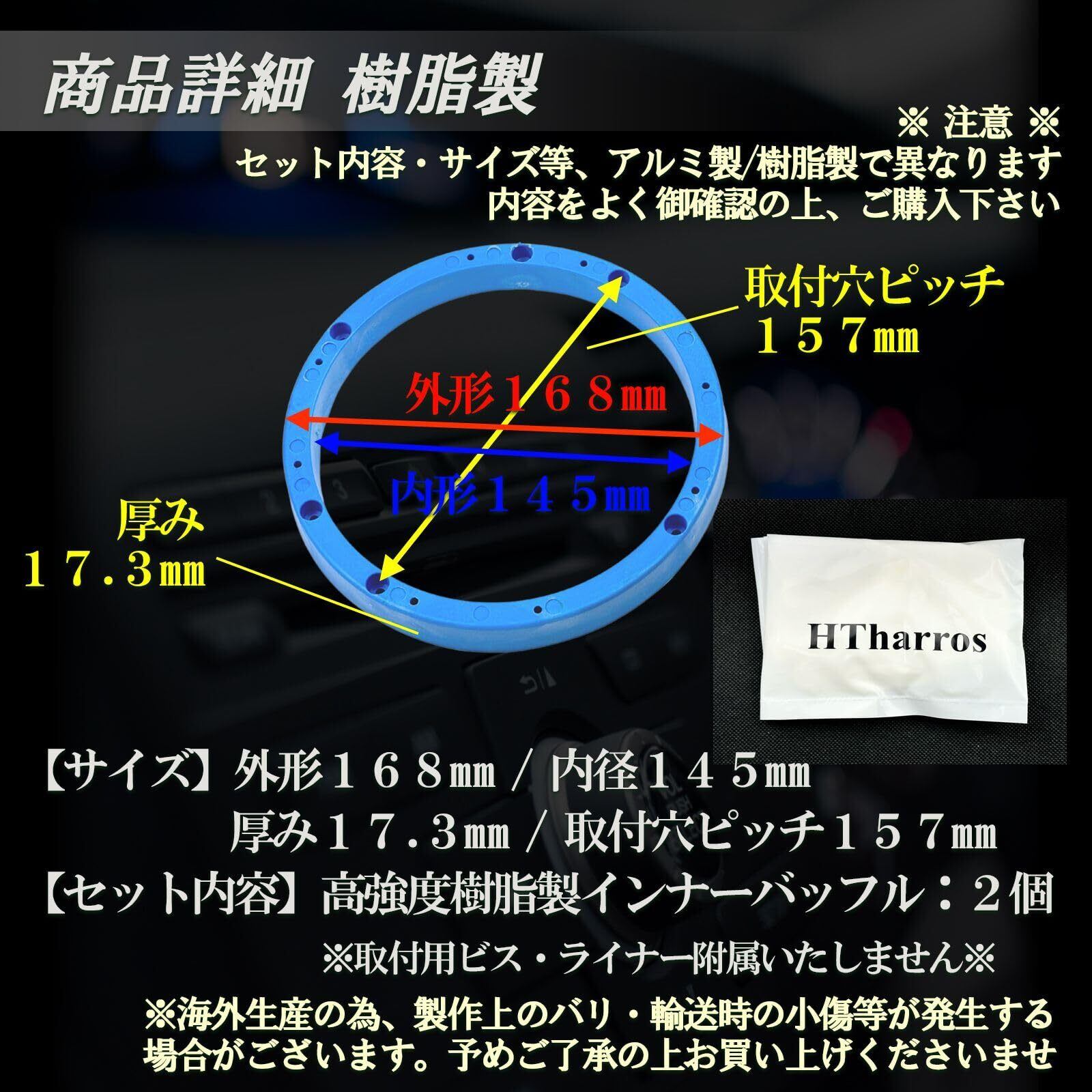 アルミ製、高強度樹脂製インナーバッフルスペーサーにより水分に強い耐水性、高強度により長期的に高音質を実現いたします。142㎜~146㎜のスピーカーに対応