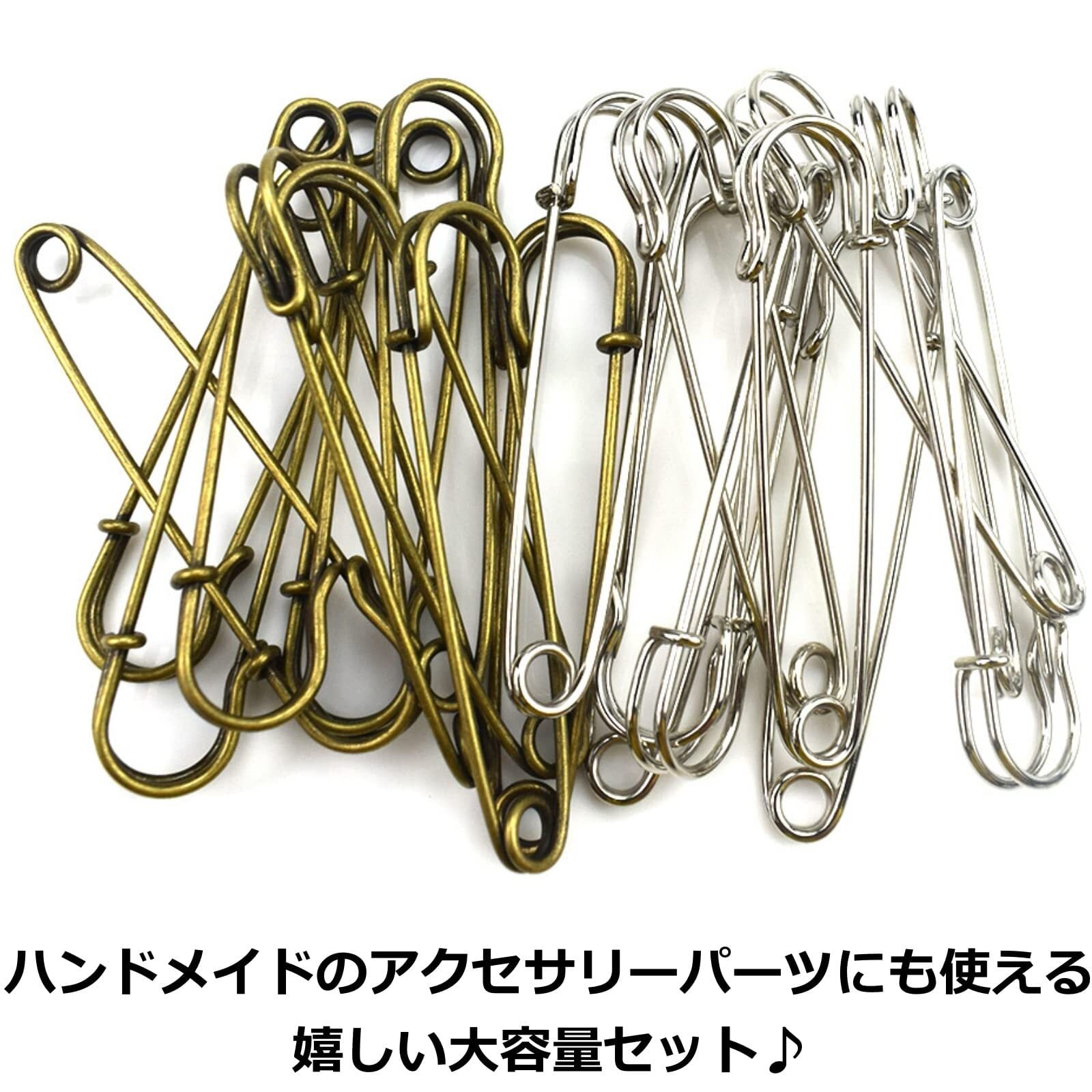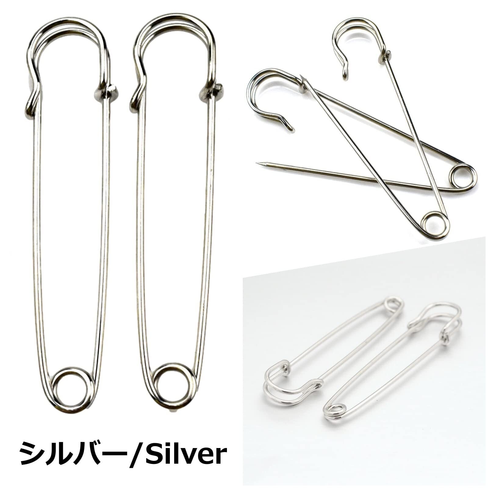 スカーフ・ストール・マフラー・カーディガン・ボレロ・巻きスカートなどの留め具に。オリジナルのブローチ制作などに。シンプルなメッキ加工のみの大きい安全ピン、10個セットです。