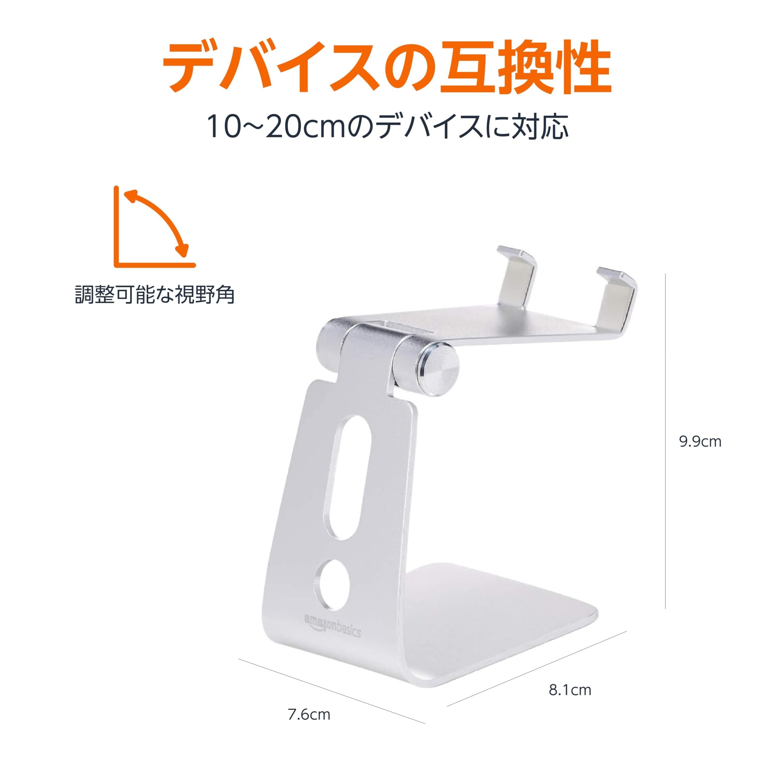 Amazonベーシック 携帯電話デスクスタンド 調節可能 アルミニウム製 iPhoneおよびAndroid用 シルバー