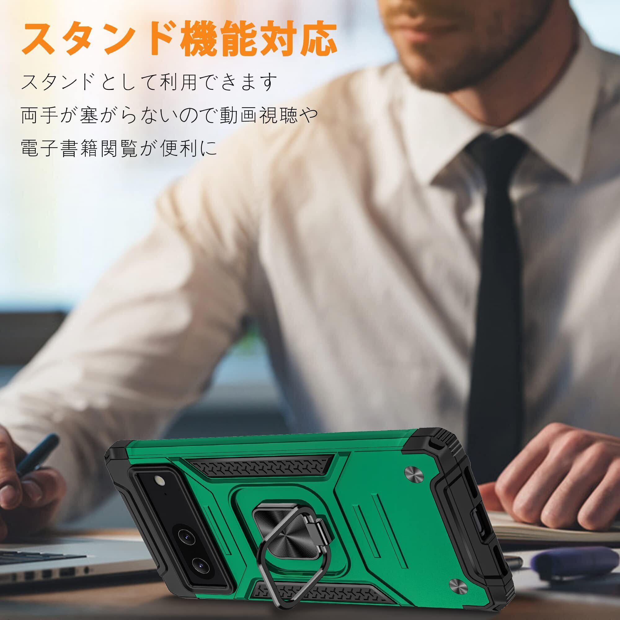 Google pixel 7 ケース リング 耐衝撃 カバー 薄型 tpu 米軍MIL規格 衝撃吸収 指紋防止TPU+PC材質 滑り止め リング付き車載ホルダー対応 落下防止 スタンド機能 傷つけ防止 全面保護 一体型 カバー 緑08004-Pixel7-04