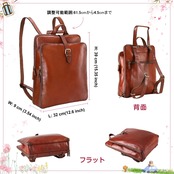 イタリア革リュックサック:イタリアからの上質な植物タンニンなめし革、この天然牛革の使う越が長くなるほど明るくなります。裹地:良い耐久性のポリエステル コットン
