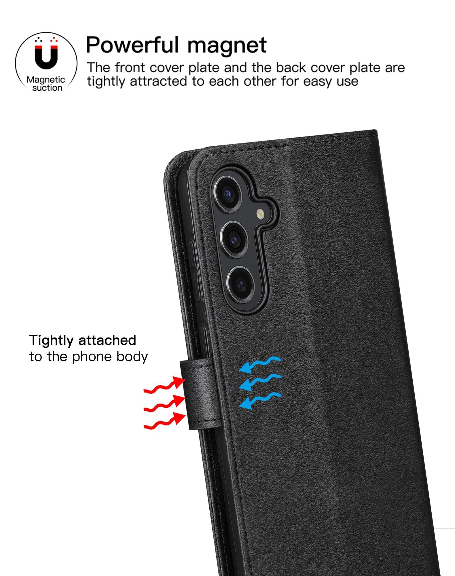 EVADA Samsung Galaxy A55ケース 手帳型 カバー 手帳 スタンド機能 カード収納付き 財布機能軽量 薄型 PUレザー 折り畳み式 Galaxy A55 保護ケース 人気 おしゃれ 全面保護カバー マグネット式 スマホケース 横置き機能対応 長持ち 耐久性 耐衝撃 (black)