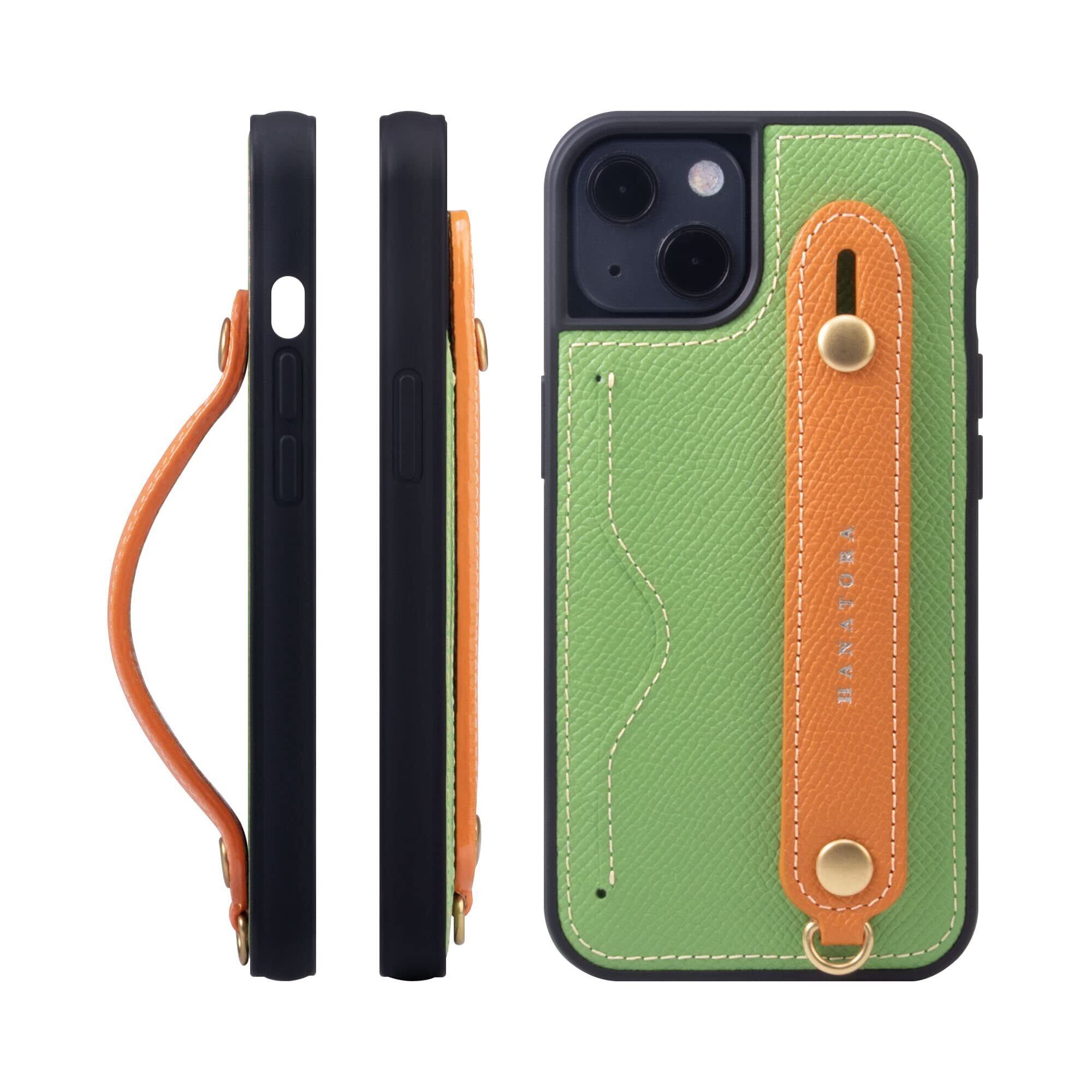 【数量限定】HANATORA iPhone15 ケース 本革 耐衝撃 背面ベルト カードポケット スマホケース スマホ スタンド機能 ネック ストラップ 付き エンボスレザー ギフト マグネットなし ヴェールクリケット+オレンジ NCGH-15-VertCriquet-OG | Premium Stage