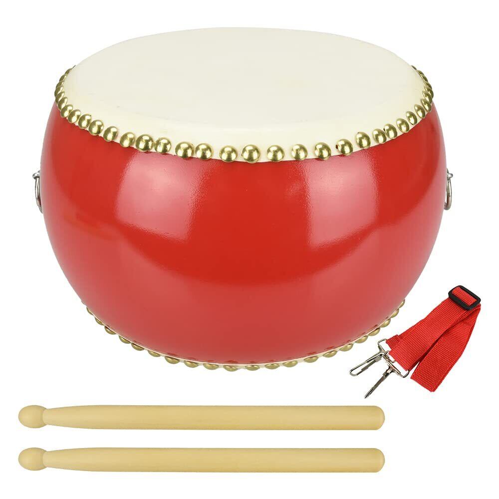 【セット内容】小太鼓×1点 バチ×1組 ストラップ×1本 【サイズ(約)】18.5cm・29cm・38.5cm ※お好きなサイズをお選びいただけます。 【カラー】レッド 【材質】牛皮