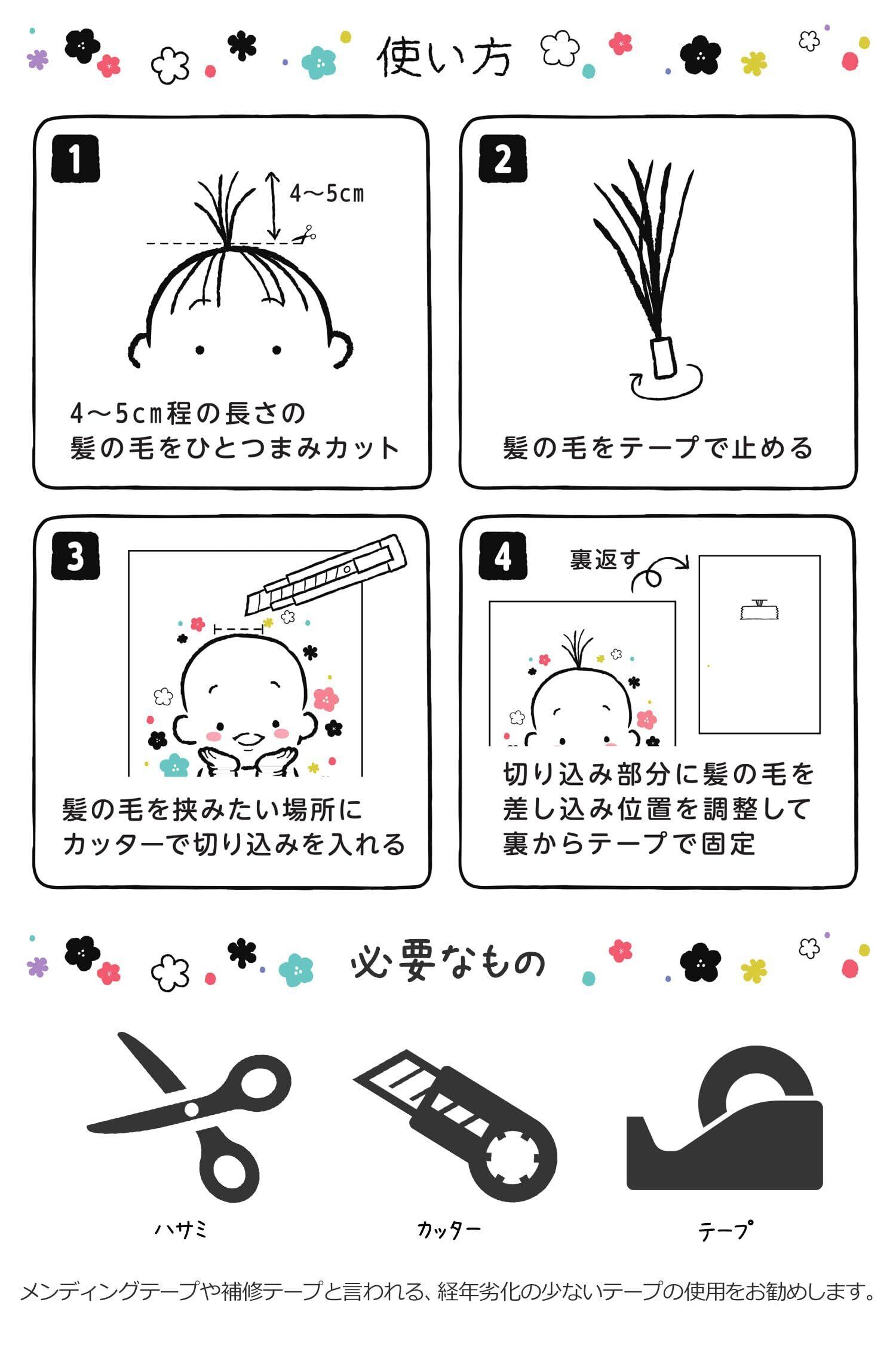【 楽しくカンタンに 】台紙に切れ込みを入れて、髪の毛を挟むだけ!ママが自分で簡単にできて、一生残る記念アイテム。