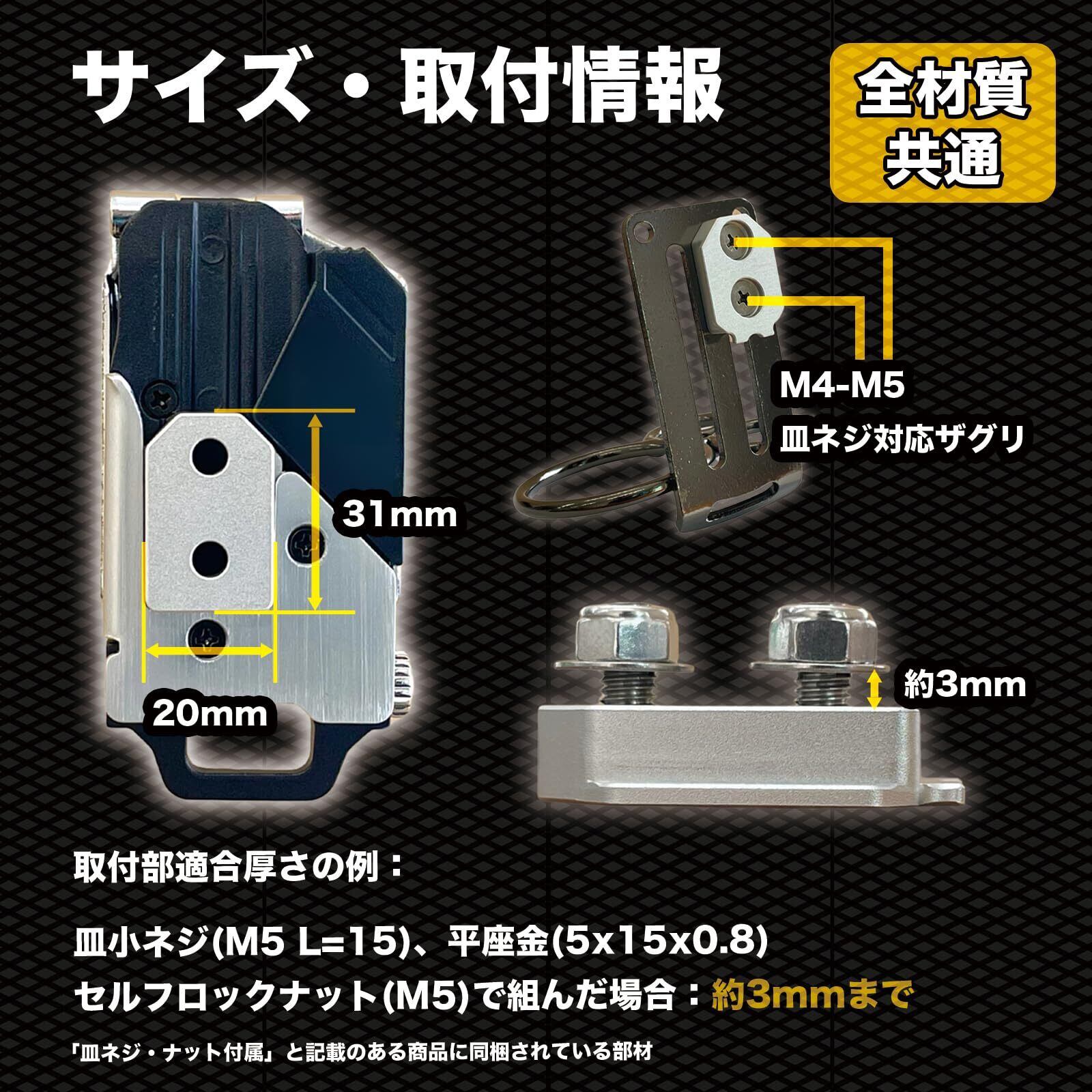 [SmartBASE] オス金具 セフティ金具 ワンタッチ工具ホルダー用【ステンレス・固定式】取付金具 スリムホルダー対応 セフティホルダー (ねじ・ナット付『2セット』)
