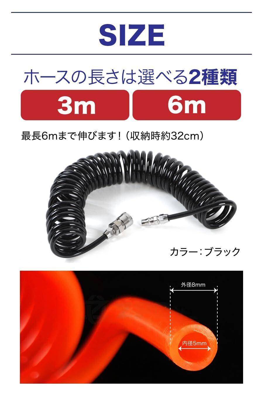 TKY エアーホース ワンタッチカプラー コイル 内径5mm 外径8mm 6m 継ぎ手 エアーコンプレッサー (3m)