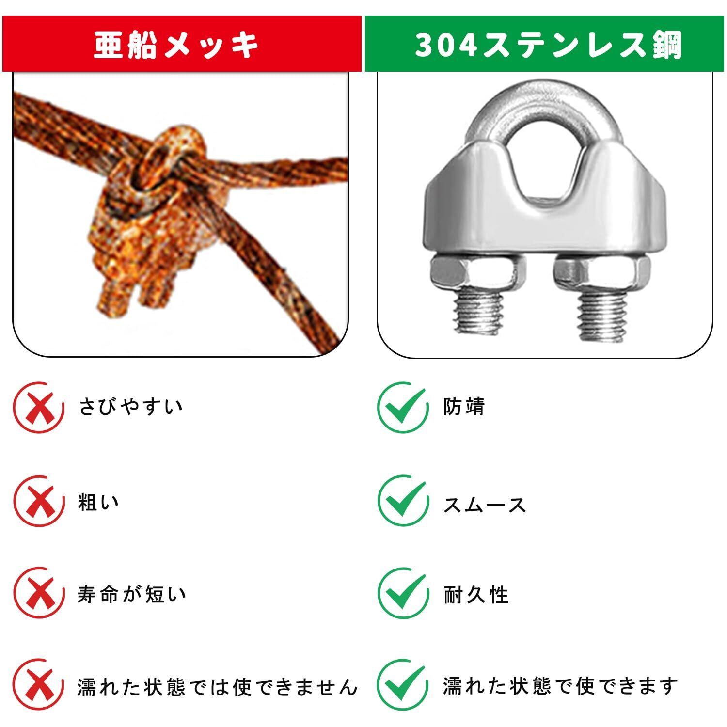【使用易い】使用時はワイヤーロープが約1/3になるまでUボルトを締めてください。銅線ロープに圧力が加わると変形するので、再度ナットの締付を行ってください。