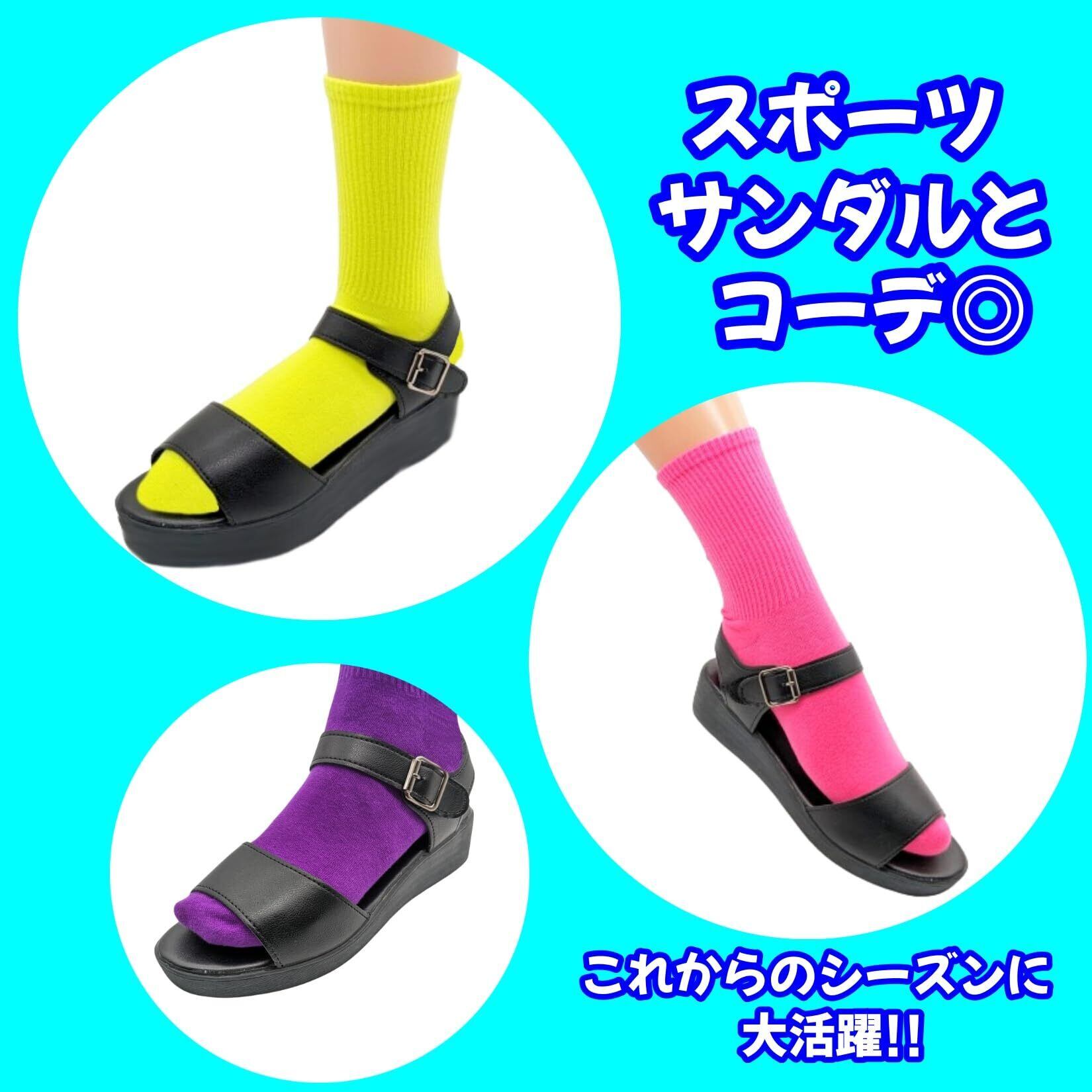 ビビットカラーのソックスはスポーツ系のシューズとの相性も抜群!特にソックスがしっかり見えるスポーツサンダルとのコーデは◎これからのシーズンに大活躍するアイテムです。
