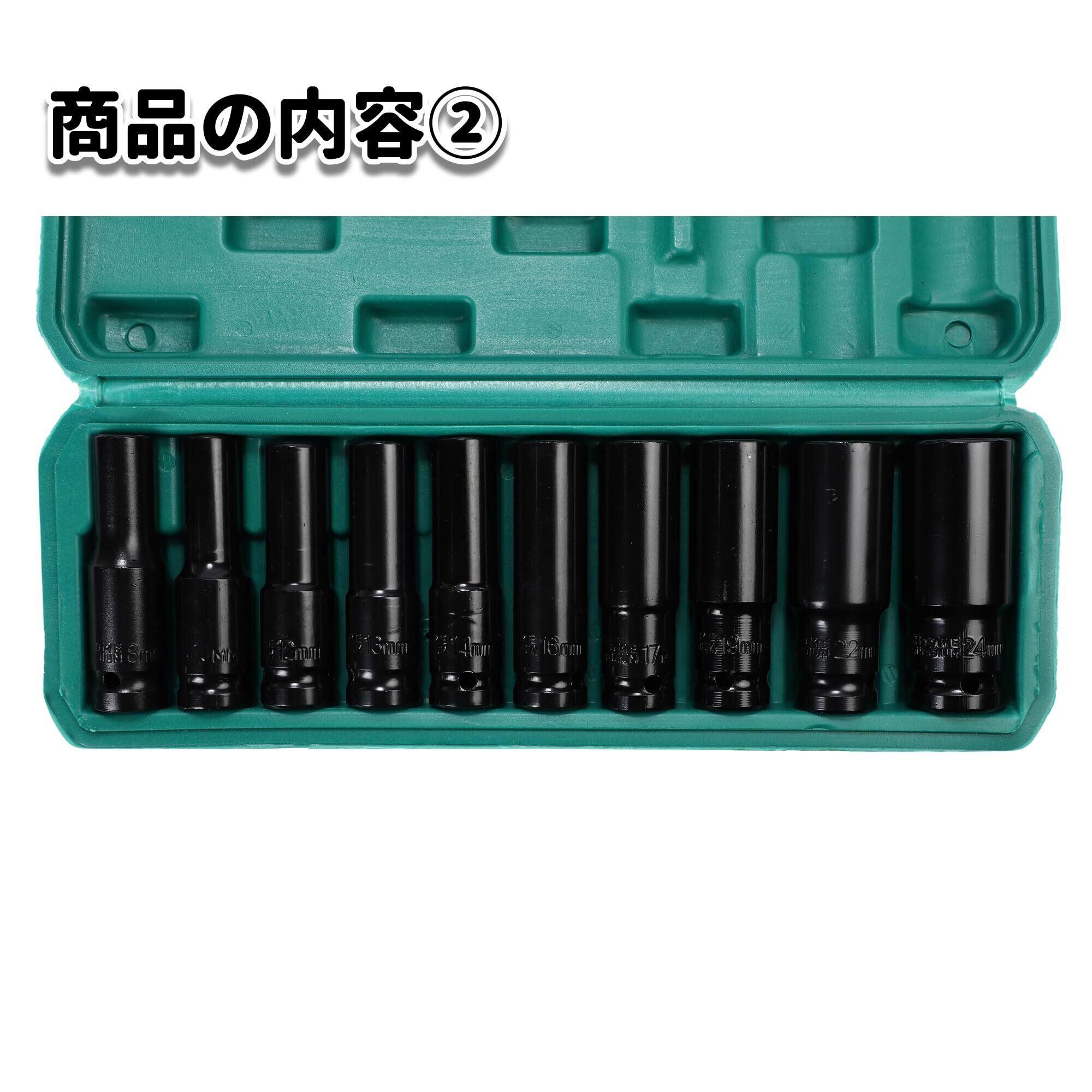 ソケットレンチ ディープソケット ロングソケット レンチ ソケット インパクト 10本 セット 収納ケース付き 六角軸 工具 DIY ロング ソケット 自動車 整備 差込角 12.7mm 1/2インチ (10, 8-24mm)