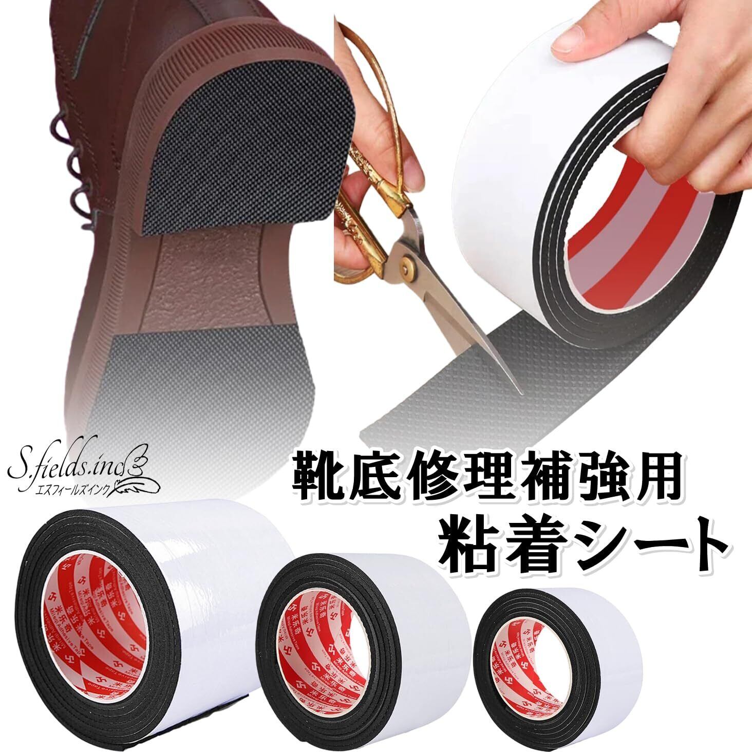 S.fields.inc 靴底修理 ゴムシート EVA樹脂 ソール交換 粘着テープ 張り替え 革靴 シューケア 2m (40mm)