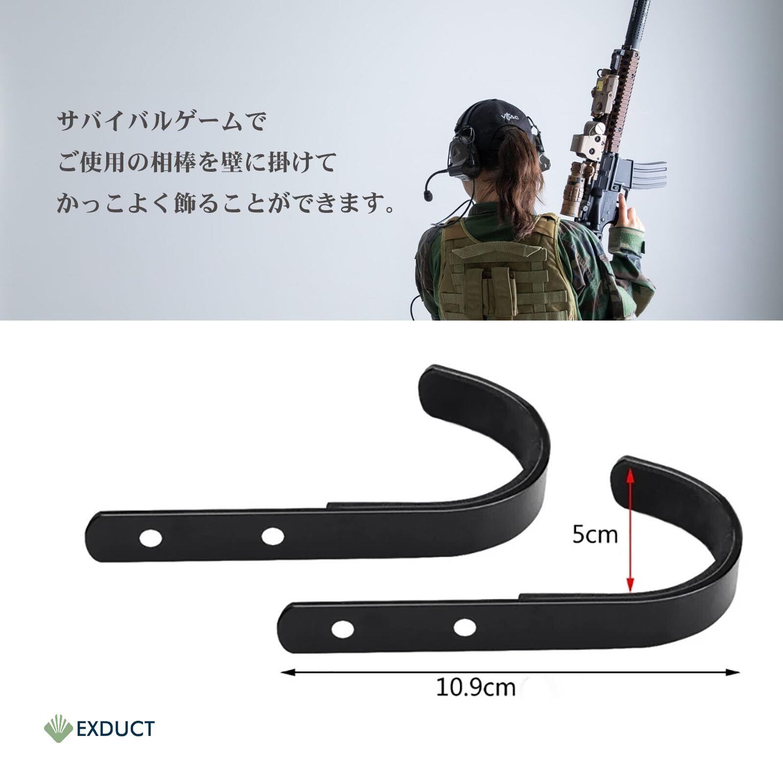 EXDUCT 壁掛け ガンラック ガンホルダー 4個セット ステンレス製 ディスプレイ ガンスタンド ライフルスタンド ネジ付き 銃ラック フック (ブラック)
