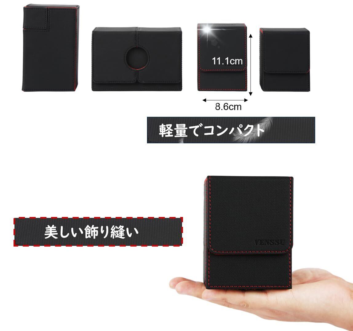 【新春セール】Venssu デッキケース トレカケース カードディスプレイウィンドウ 100枚 二重 三重スリーブ対応 縦入れ 仕切り2つとトップローダー1つ付き 革 (黒内装灰) | Premium Stage