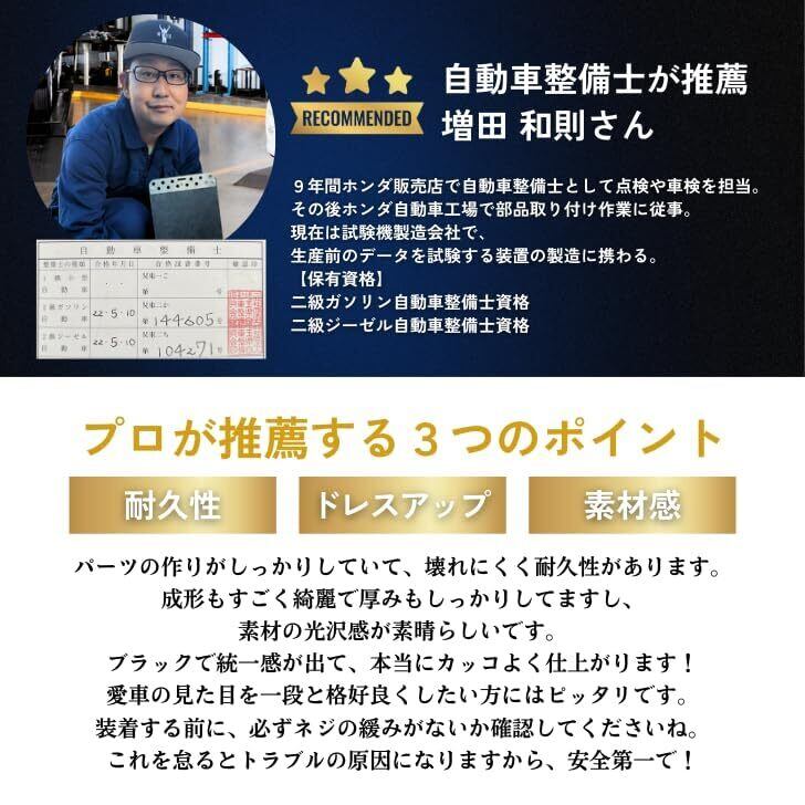 【注意事項】取り付け前に、車両の取扱説明書を必ず確認し、適切に取り付けてください。製品は泥や砂などの飛び散る物質を防ぐ目的で設計されていますが、完全な保護を提供するものではありません。運転時には安全を確保するために適切な注意を払ってください。