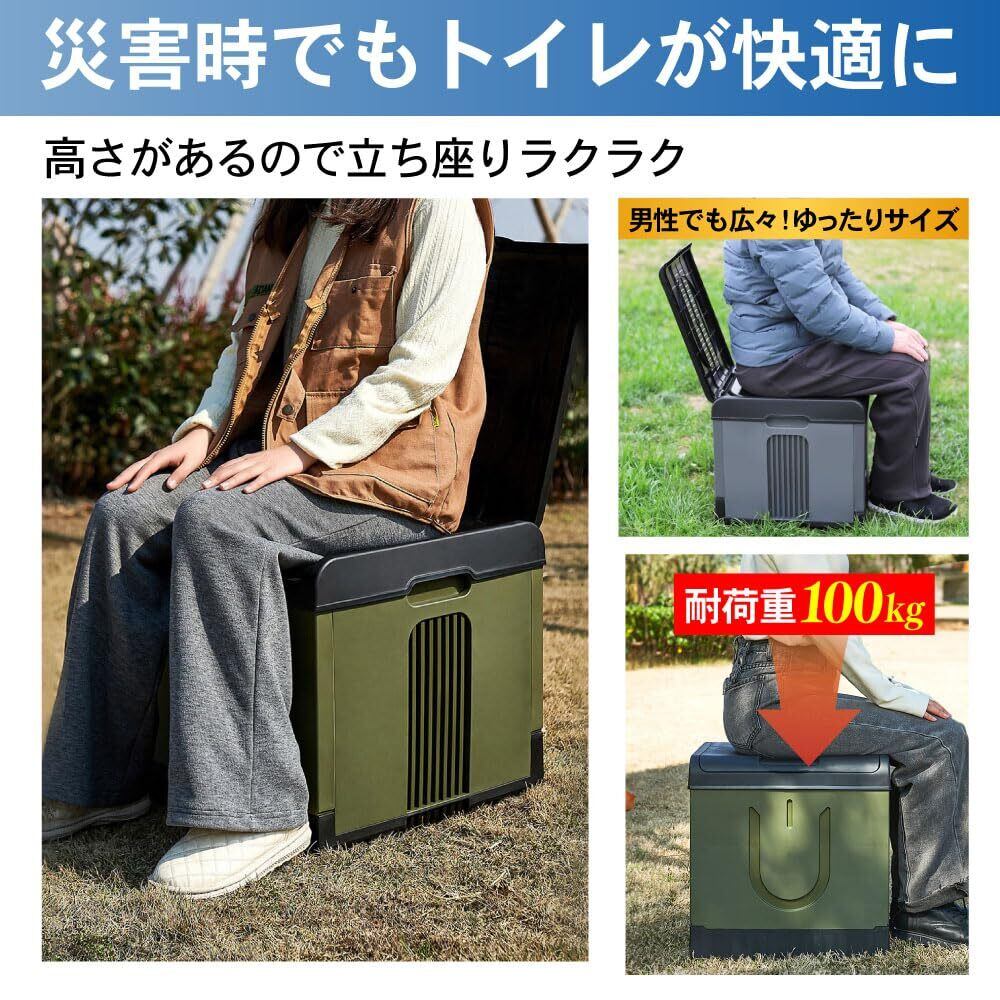 【軽くて、折りたためて、コンパクト】約3㎏ととても軽量で、持ち運びのしやすい簡易トイレです。折りたたむことでコンパクトになるので、非常用として押入れや車のトランクに収納しておいても邪魔になりません。また、簡易トイレとしてだけではなく、コンテナボックス、踏み台、イスなど使い方もさまざまで多くのシーンに使用できます。