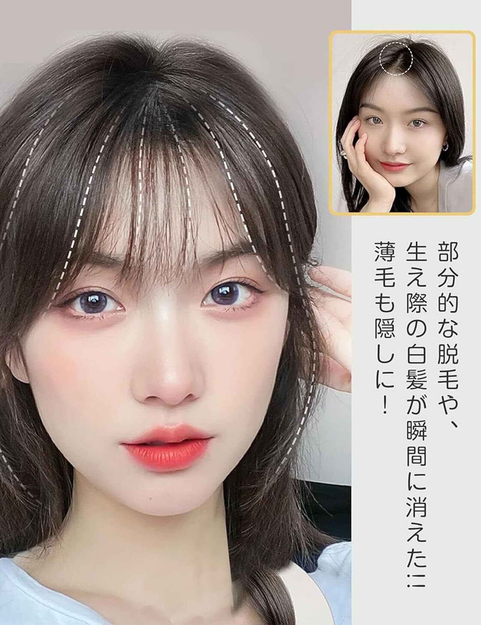 頭頂部だけ、髪と馴染むのでウイッグを装着しているのが周囲からわかりにくく、オシャレなファッションアイテムとして「白髪隠し」、「ボリュームアップ」、「ダメージヘアのカバー」が可能です。