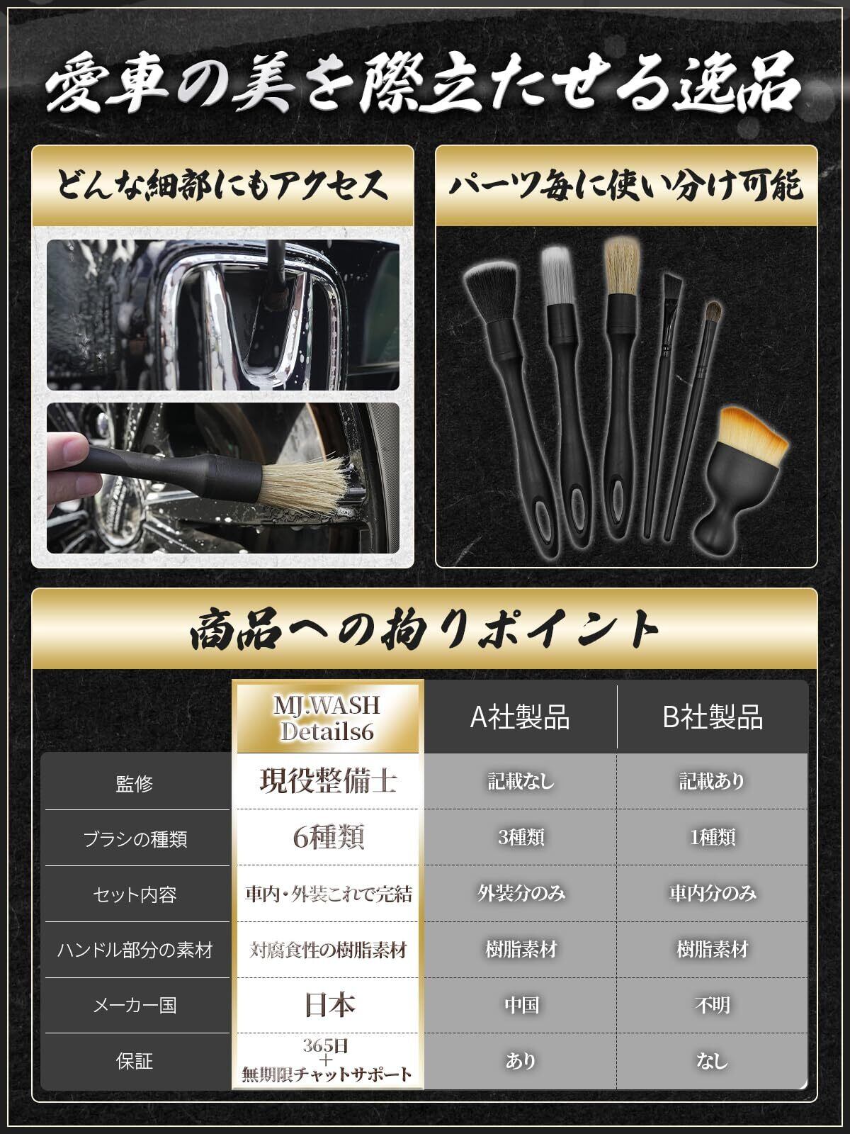 【現役整備士監修】 洗車ブラシ ホイールブラシ 『細部の汚れを徹底洗浄』 ディティールブラシ 洗車傷防止 手洗い洗車 6本セット MJ. Wash