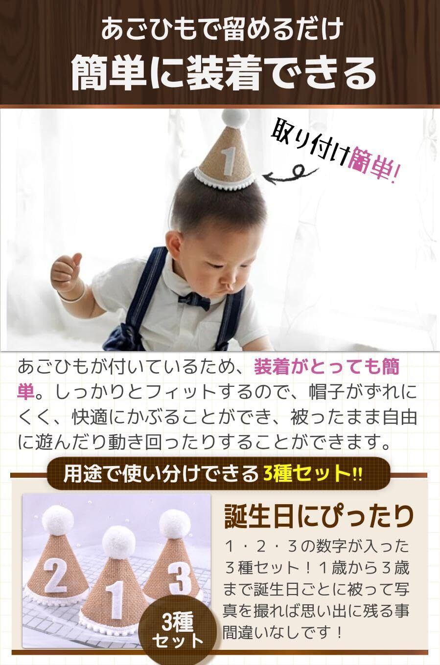 【誕生日にぴったり】1・2・3の数字が入った3種セット!1歳から3歳まで誕生日ごとに被って写真を撮れば思い出に残る事間違いなしです!