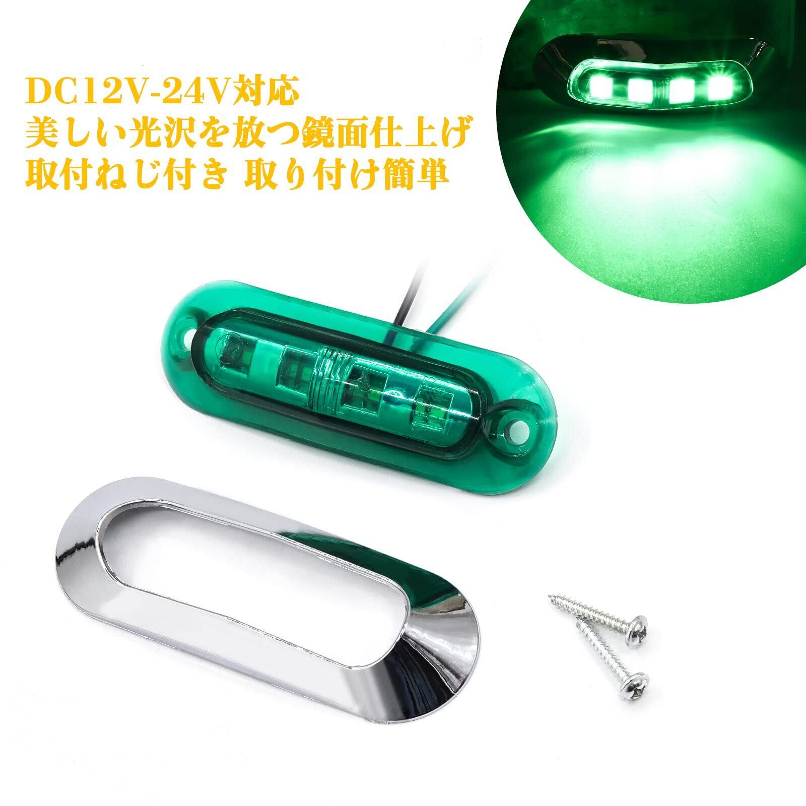 X-STYLE サイドマーカーランプ 4連LED 12V 24V 緑 車幅灯 リアサイドライト 信号灯 トラック トレーラー バス ボート 汎用 マークランプ 10個セット (グリーン)