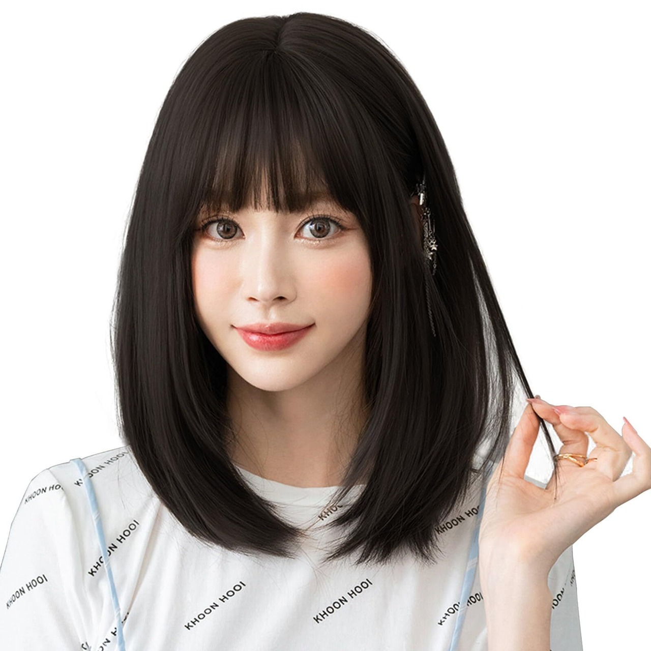 ウィッグ セミロング ストレート フルウィッグ 女性 かつら 自然 黒茶 髪 ロング ウイッグ コスプレ 女装 wig 小顔 耐熱 ネット ギフト ボックス 付(黒茶)