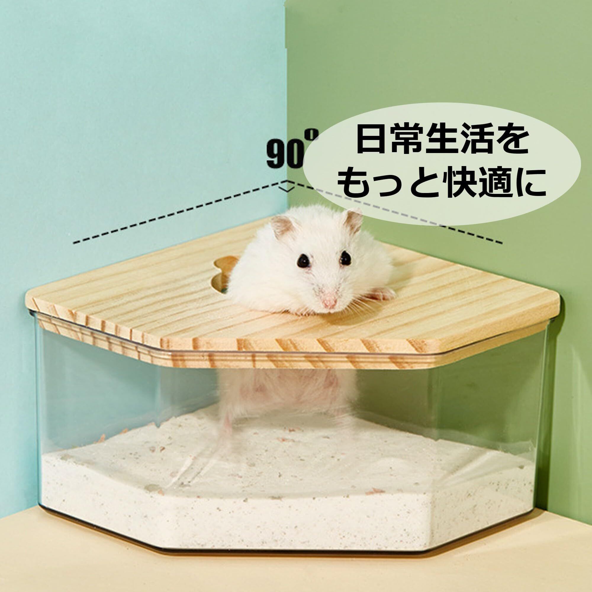 Asdays ハムスター トイレ クリア コーナー型 多機能 脱臭 バス 遊び場 おしゃれ 掃除しやすい 飛び散り防止 (大サイズ)