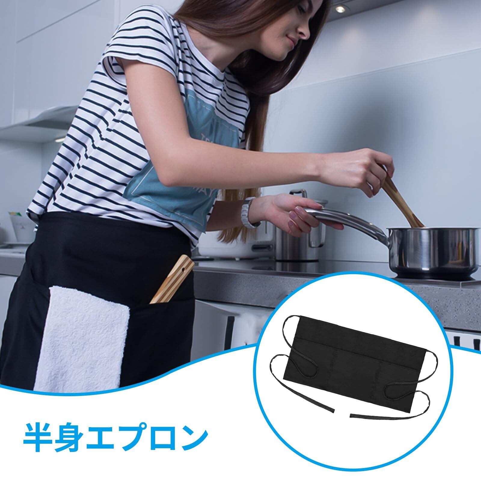 [Doyime] ショート エプロン メンズ レディース 前掛け ソムリエエプロン 短め 丈 腰下 無地 カフェ 飲食店 サロン シェフ レストラン 可愛い カフェエプロン 3つポケット 男女兼用 ブラック