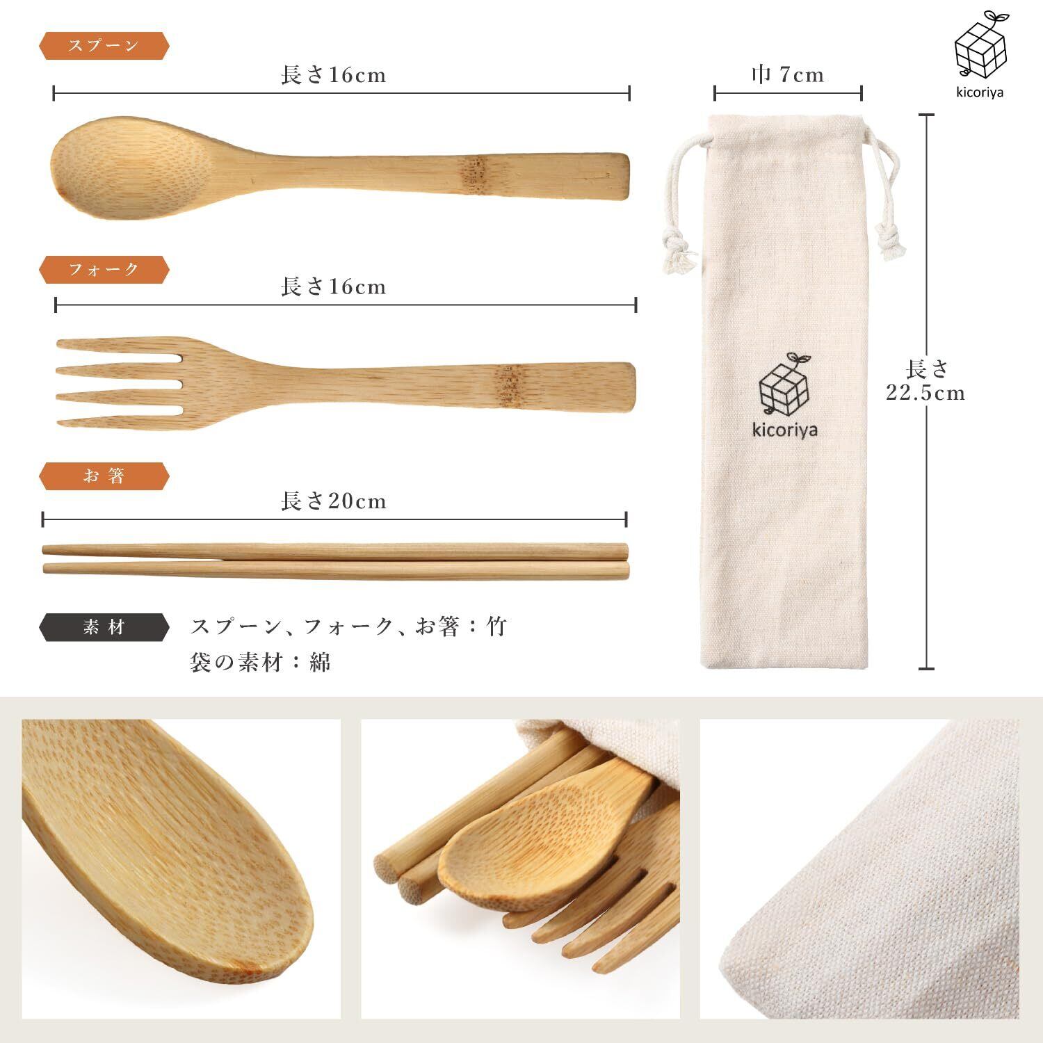 木製 箸 フォーク スプーン 3点セット 収納袋付 カトラリー アウトドア 弁当 キャンプ kicoriya