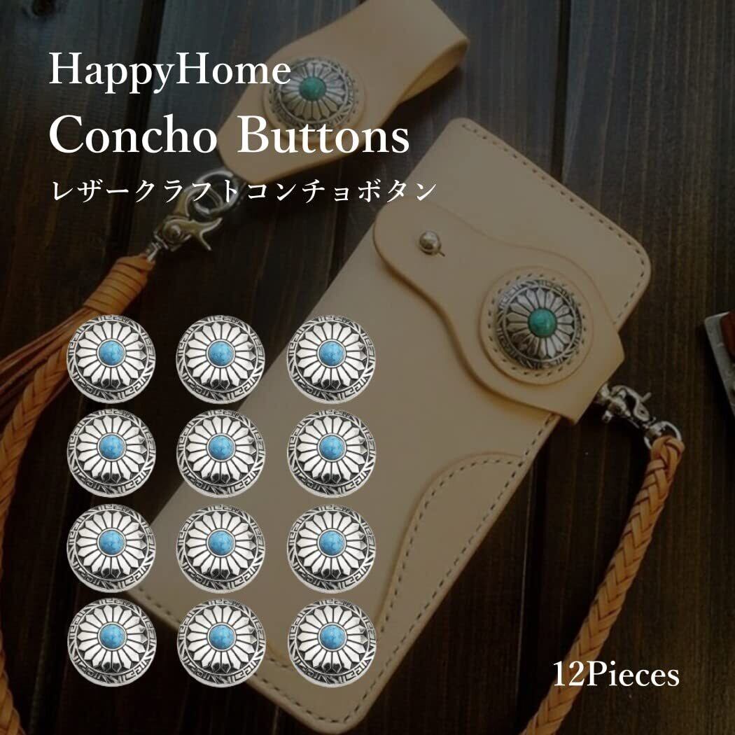 HappyHome コンチョ ボタン 12個セット ターコイズ ネジ式 インディアン フェザー フラワー 30mm レザークラフト 財布 手芸 (Bタイプ)