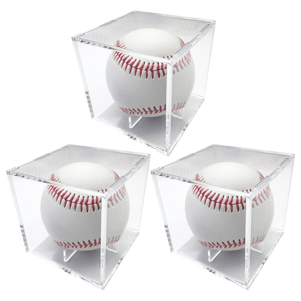 らくちん生活ネット サインボールケース ディスプレイ 展示 野球ボール 記念ボール UVカット仕様 クリア 組み立て (3個セット)
