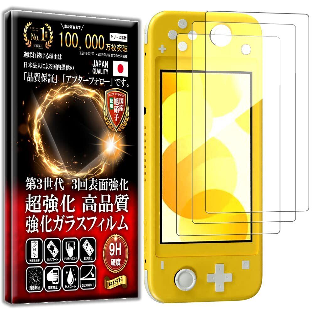 【最新強化モデル】【3枚セット】 フィルム Nintendo Switch Lite ガラスフィルム 硬度10H RISE 保護フィルム 強化 ガラス 高透過 高光沢 日本製 旭硝子 2.5Dラウンドエッジ 自動吸着 気泡ゼロ 飛散防止 指紋防止 撥水撥油 3D タッチ For Nintendo Switch Lite