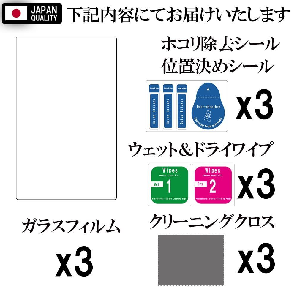 ■充実した付属品、専用動画で簡単貼り付けが可能。■万が一貼り付けに失敗しても安心のお届け後15日間の貼り付け保証付き。■内容品:クリアガラスフィルムx3、ウェットクロスx3、ドライクロスx3、埃吸着シートx3、クリーニングクロスx3、貼付説明書付属。