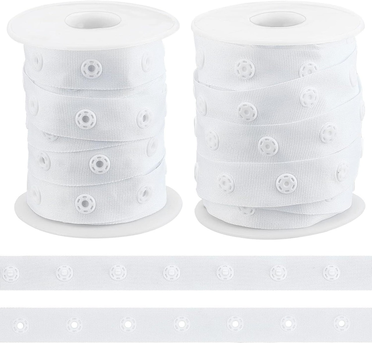 OLYCRAFT 9.5~10ヤードセット スナップテープ 幅18mm ポリエステルスナップ プラスチックボタン スナップ ファスナー テープ 縫製材料 ボタンが付 手芸用品 衣料品 アクセサリー 縫材料(ホワイト)