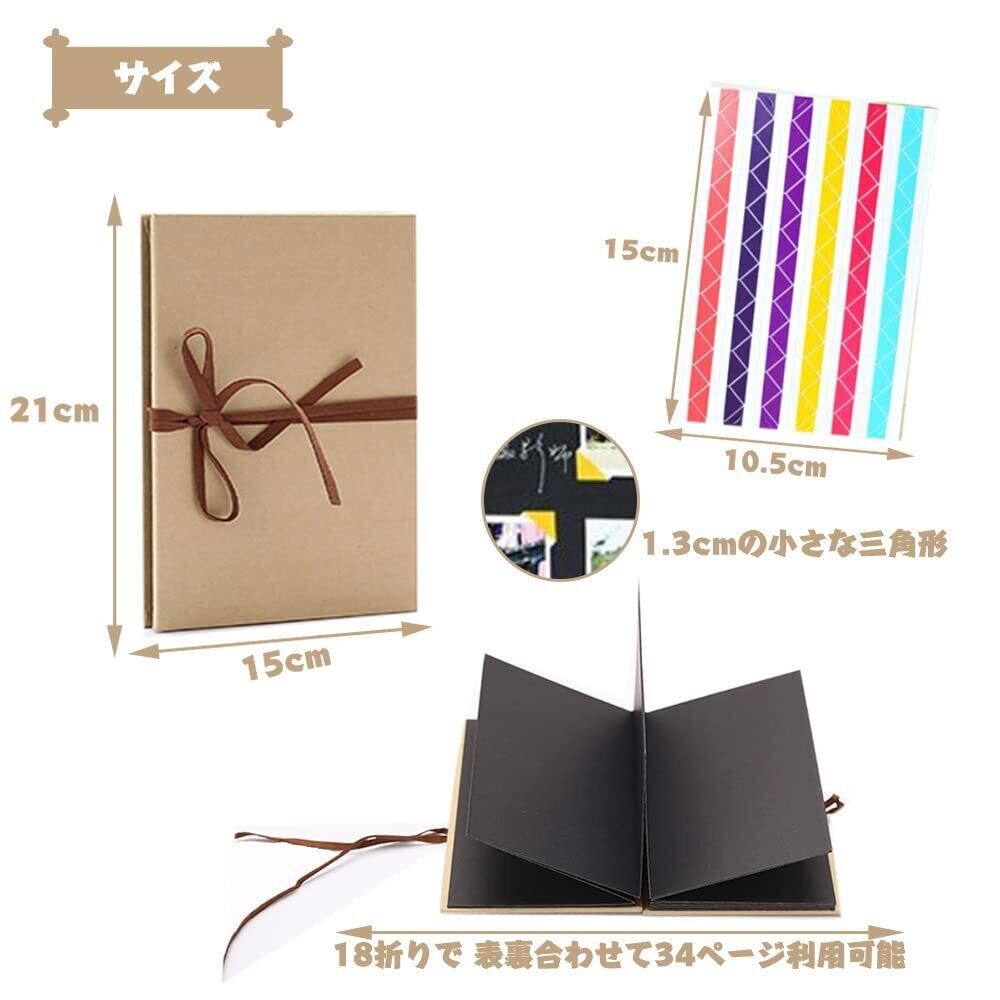 手作りアルバム アルバム DIY アコーディオン式アルバム 誕生日 アルバム スクラップブック 記念写真集 折りたたみアルバム 誕生日プレゼント フォトアルバム 卒業祝い 夫婦のおみやげブックレット 結婚記念日 贈り物 グローイングアップアルバム 恋愛/結婚記念日/卒業/誕生日/ホリデーギフトなどを作る 3枚コーナーステッカー 15*21cm (ブラック)
