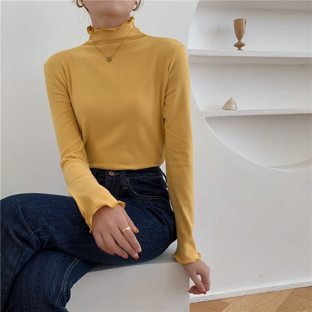 [拼衣坊] カットソー 秋冬 微起毛 プチハイネック レディース 長袖 インナー コーデ レイヤード カラバリー 秋冬 重ね着