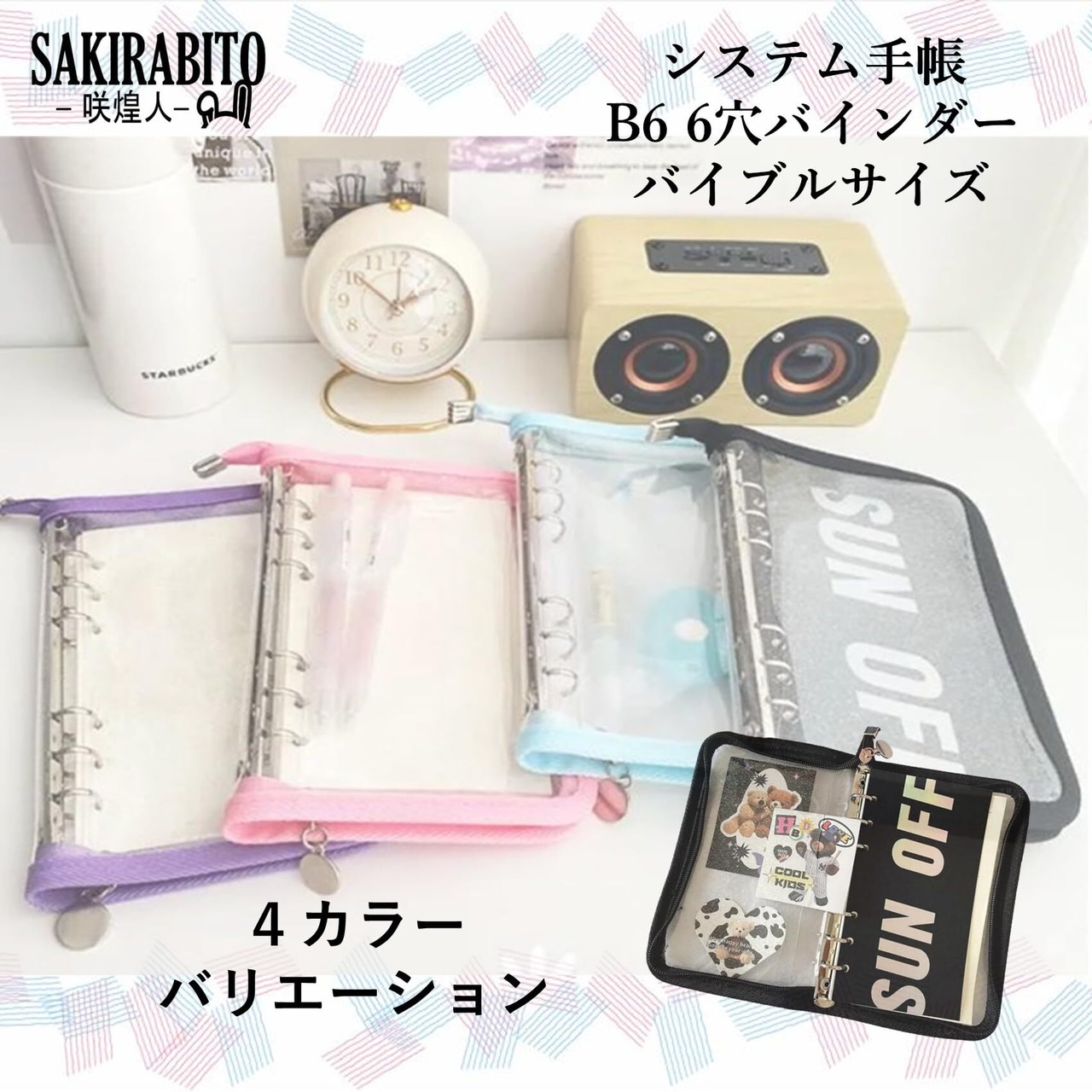 SAKIRABITO システム手帳 ミニ6穴 B6 バインダー バイブルサイズ ソフトビニール ラメ入り 女の子 (パープル)
