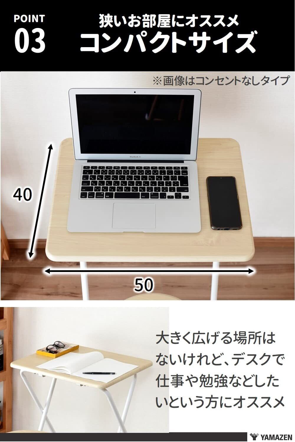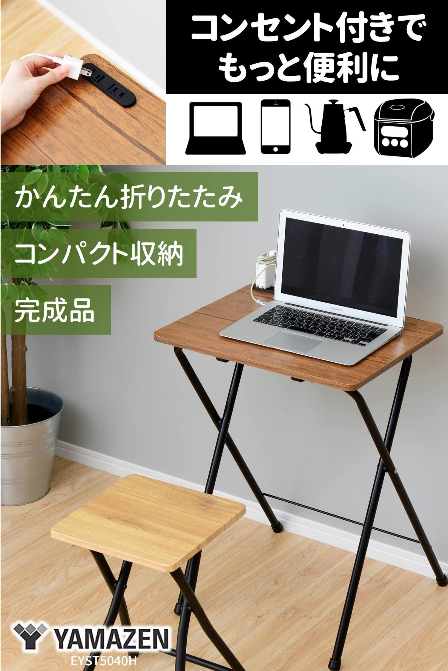 山善(YAMAZEN) テーブル ミニ 折りたたみ (コンセント付き) サイドテーブル 幅50×奥行48×高さ70cm 傷や汚れに強い天板(メラミン加工) 角が丸い アンティークブラウン/ブラック EYST5040H(ABR/BK4) テレワーク