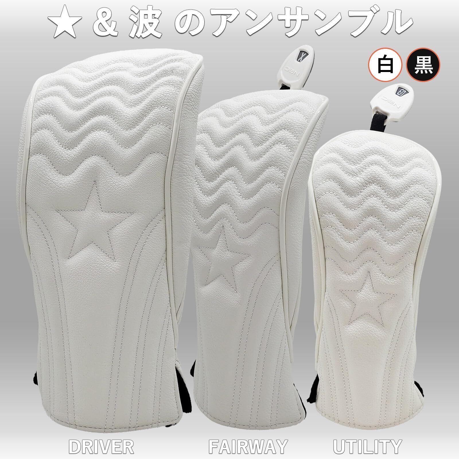 ゴルフ ヘッドカバー 高級pu革 ドライバー DR ウッド用 FW 2点 ヘッドカバー 3点セット 波 変換ダグ付き